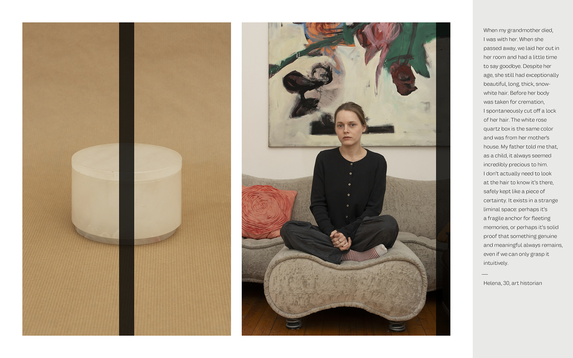In addition, there are brief explanations from those portrayed. These personal stories recount how the individuals came to possess their objects — and in doing so reveal the memories, meanings and feelings associated with them. This offers small insights into individual relationships, appreciation and affection.